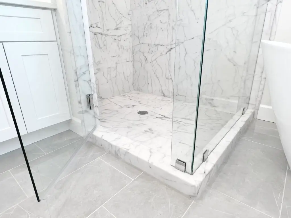 Frameless doors use thicker glass and heavy-duty pivots for a seamless, modern look with no metal around the edges. Semi-frameless doors have metal framing around the structure but none around the actual door panel. Both are excellent options, and we can help you decide which fits your budget and style best.